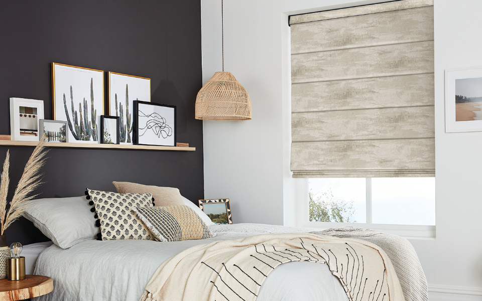 Enhance comfort and ambience with blackout-lined Romans in plush fabrics. The smooth, concertina folds create a sense of calm, while the insulation helps regulate warmth for restful sleep.