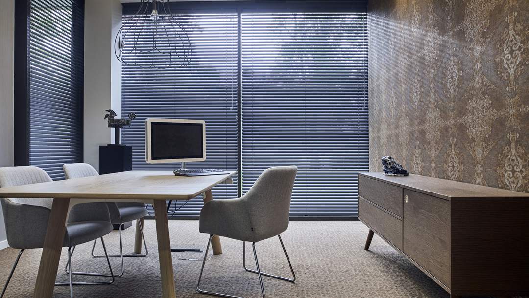 Control screen glare with precision. The tilting slats let you filter light for focused work while maintaining privacy. Pair metallic or matte aluminium with contemporary décor for a clean, professional feel.
